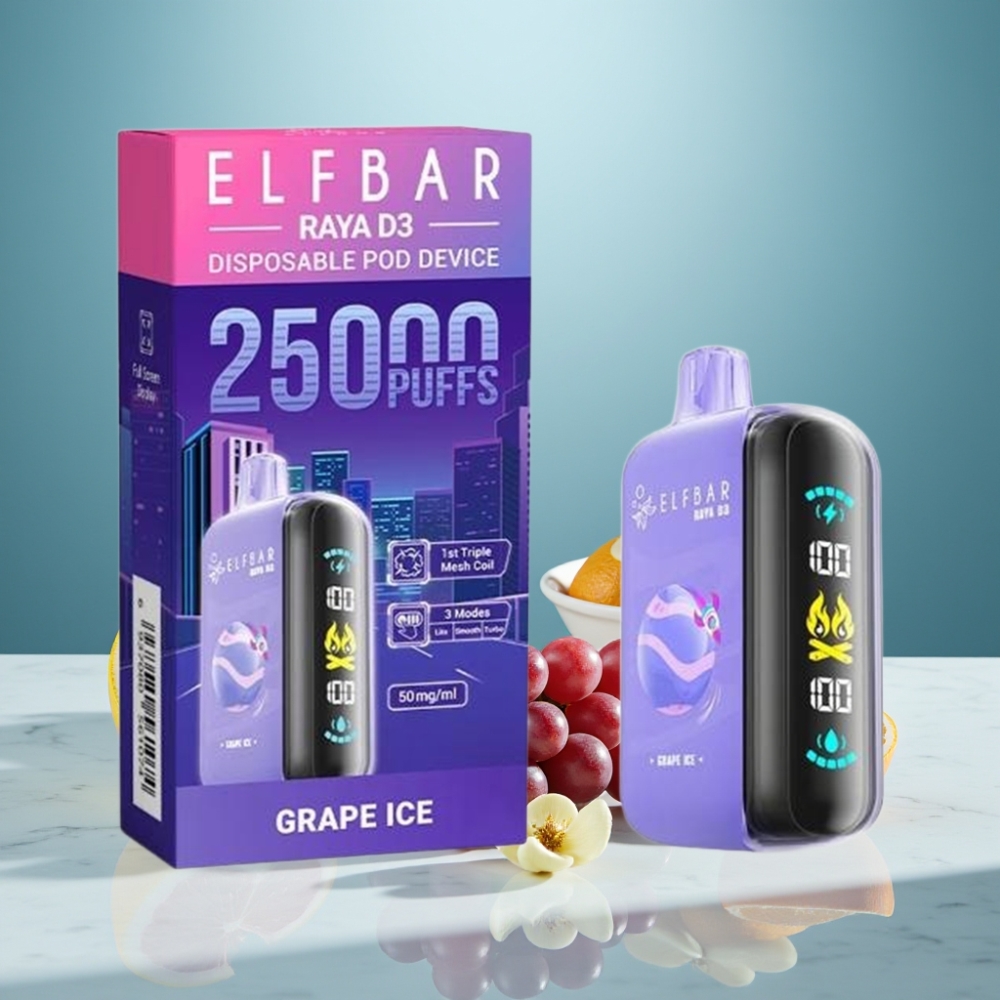 ELF BAR RAYA D3 25000 Züge Wegwerf-Vape Trauben-Eis, 23ml, 5% Nikotin, Typ-C