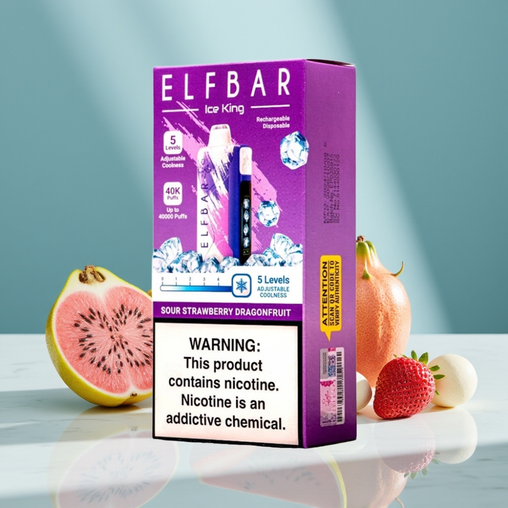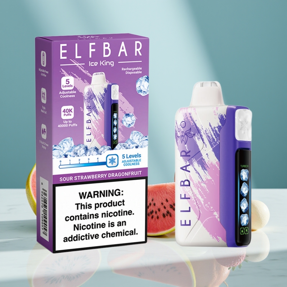 ELF BAR Ice King 40000 Züge 20ml 5% Nikotin 850mAh LCD Saure Erdbeere-Drachenfrucht